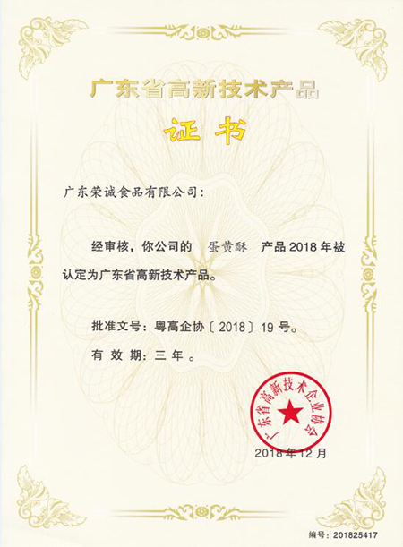 2017被廣東省科技廳認定為“廣東省潮汕特色糕餅工程技術(shù)研究中心” |