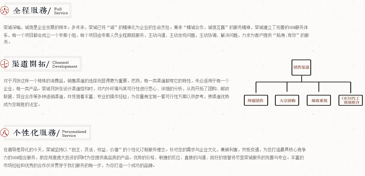 榮誠作為一家高標準、規(guī)范化、規(guī)?;膶I(yè)烘焙生產企業(yè),依靠強大的專業(yè)能力,每年可為上千家企業(yè)提供形式靈活、創(chuàng)意時尚的個性化定制服務,業(yè)務類型覆蓋:合作授權定制、酒店禮食定制、渠道創(chuàng)意定制、集團福利個性化定制、跨界聯(lián)名定制等各式各樣的定制需求。榮誠與多個省市的中國郵政、中國聯(lián)通等大型企業(yè)單位建立長期合作,提供專屬定制禮食產品,接受客戶及第三方檢測機構的專業(yè)嚴格驗廠。在渠道端二十多年的市場耕耘,榮誠與沃爾瑪、大潤發(fā)、世紀聯(lián)華等各大連鎖KA賣場建立穩(wěn)定的合作,產品與服務獲得消費者的廣泛認可。