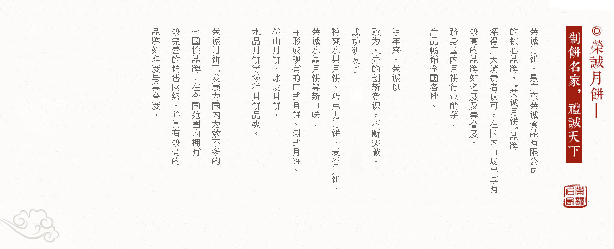 以團(tuán)圓為餡,以人生百年制酥,用中國(guó)人的思念焙烤。榮誠(chéng)月餅--默默守護(hù)中秋文化