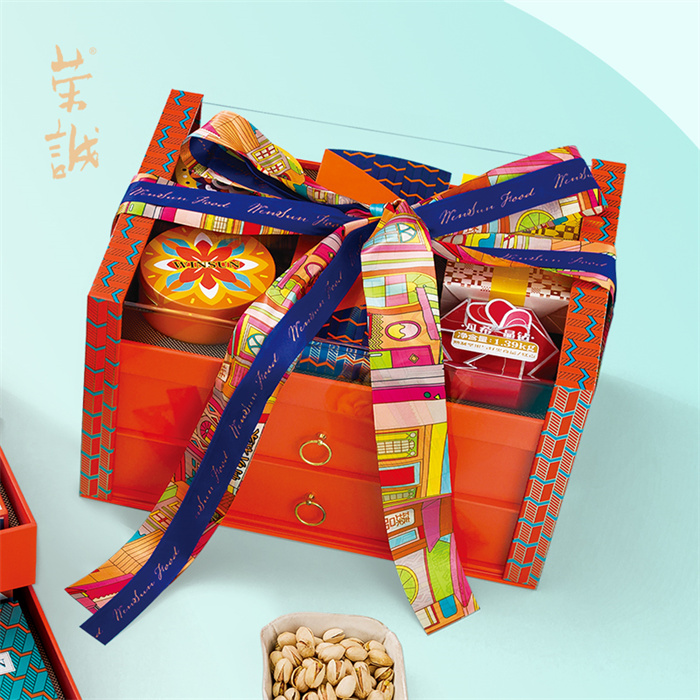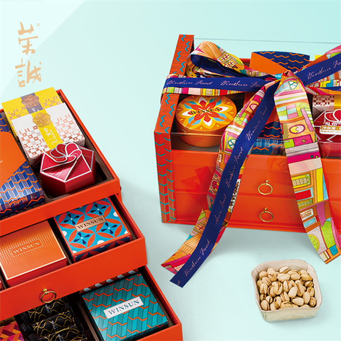 【編 碼】 YBZ2123(22) 【條形碼】 6925755560507 【尺 寸】 35x26.5x20cm 【凈含量】 1390g 【規(guī) 格】 1390gx2盒/箱 【內(nèi)容物】 100g開心果(鐵罐裝)x1,100g綜合果仁(鐵罐裝)x1,100g蛋黃純蓮蓉餅x2,30g香妃鳳梨酥x2,50g乳酪芝士餅x1,100g五仁鮑魚餅x2,60g燕窩雪酪糕點(diǎn)x2,80g桃山糕點(diǎn)(藍(lán)莓芝士)x2,60g流沙蛋黃酥(斑斕椰絲)x2,50g御瓷酥糕點(diǎn)(巴旦木腰果)x2,30g黑金鳳梨酥x6