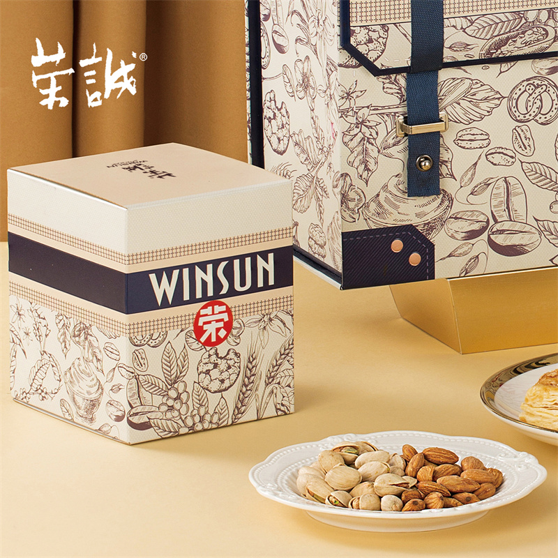 100g鹽焗巴旦木果仁x1,100g開心果x1,18g燕麥方塊脆x15,10g松塔x8,20g腰果千層酥x2,20g椰絲千層酥x2,20g南瓜籽千層酥x2,25g芒果味軟心格子西餅x3,25g生椰拿鐵軟心格子西餅x2,25g榴蓮味軟心格子西餅x2,25g海鹽檸檬味軟心格子西餅x3