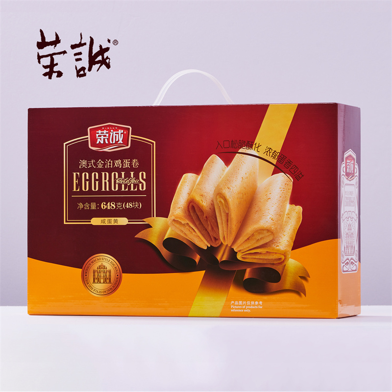 【編 碼】 CGZ2102 【條形碼】 6925755534423 【尺 寸】 37x11x24cm 【凈含量】 648g 【規(guī) 格】 648gx8盒/箱 【內(nèi)容物】 13.5g澳式金泊雞蛋卷(咸蛋黃)x48