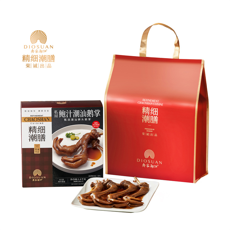 【編 碼】 JXCS2401(Q) 【條形碼】 6925755536007 【尺 寸】 33.5x14x33.5cm 【凈含量】 1400g 【規(guī) 格】 【內(nèi)容物】  1.4kg私房鮑汁潮汕鵝掌(獅頭鵝掌) x1(內(nèi)含潮汕獅頭鵝掌4只)