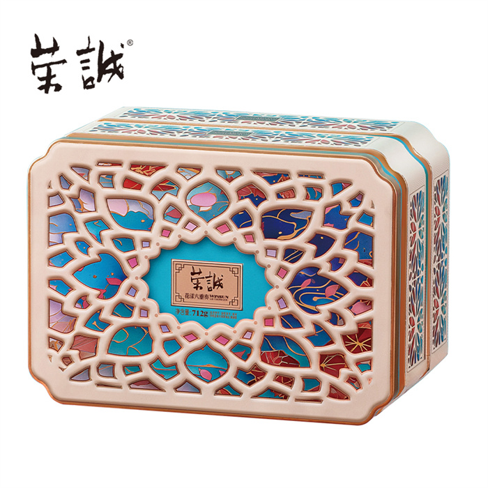 100g綜合果仁x1,70g黃桃干x1,8g原味奶油曲奇x8,10g椰蓉奶酥x8,10g香焙黑芝麻酥x8,25g檸檬卡曼橘玉葉糕x1,25g元氣鳳梨軟心糕x1,25g奶油黃桃紙鳶糕x1,30g橙香咖啡小點x1,30g幸運芝士糕x1,25g榛仁椰絲黑巧方x1,25g椰椰芒果酥x1,20g蔓越莓紅殼桃x1,25g古早蛋黃酥x1,23g杏仁椰皇藍莓糕x1,35g椒鹽牛肉卷云糕x1,30g牛乳芒果酥x1