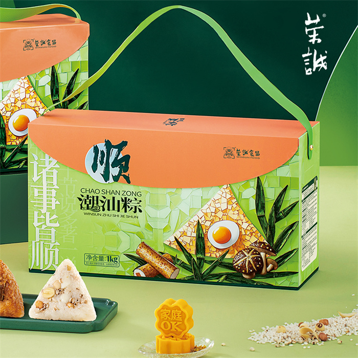 【編 碼】 HZZ2503 【條形碼】 6925755536885 【尺 寸】 36x12x20cm 【凈含量】 1kg 【規(guī) 格】 1kgx8盒/箱 【內(nèi)容物】  100g潮汕地道鹵水肉粽x2,100g潮汕秘制菜脯鮮鴨肉粽x2,100g潮汕蜜制桂香糯藕粽x2,100g潮汕特色甜肴五果粽x2,35g腐乳餅x4,30g滋芯綠豆糕(海鹽檸檬味)x2